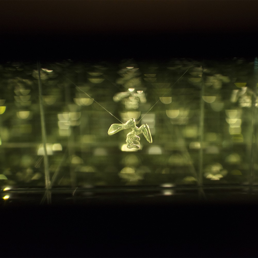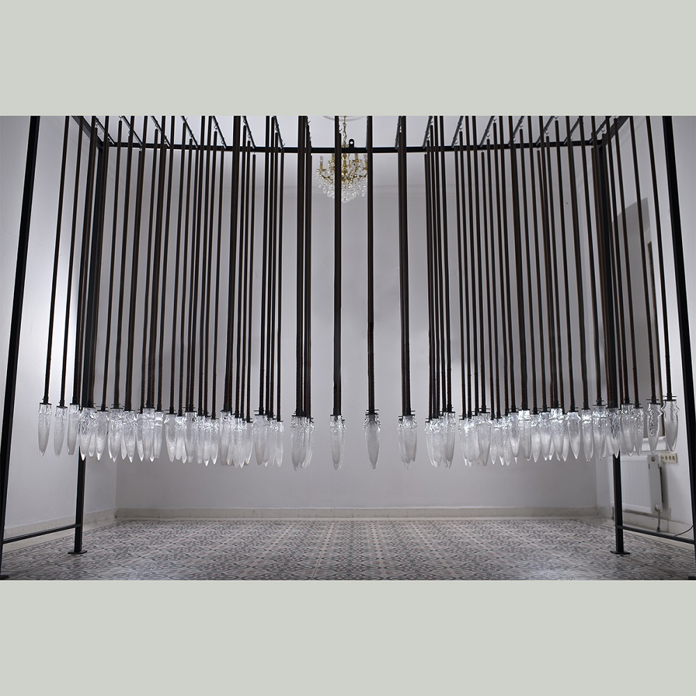 “İsimsiz”, metal bir konstrüksiyondan sarkıtılan, uçları ısıtılmış cam malzemesinden sapları ise ahşap malzemeden üretilmiş 80 adet mızraktan oluşur. Mızraklar asırlar boyu “kahramanlık”ların nişanesi olmuşlardır. Bazen öldürmüş bazen de sahibi için ağıtlar yakılmıştır. Bu çalışma da, hazin bir şekilde hüsrana uğramış, ağıtlarla uğurlanan Troya bedenlerini anar ve Troya’da can verenlerin geride bıraktıklarına bir ağıt niteliği taşır. Troya’da öldürülen savaşçıların göğüslerine saplanan mızrakların aslında onlara değil geride bıraktıklarına ithaf edilen bir anıt…