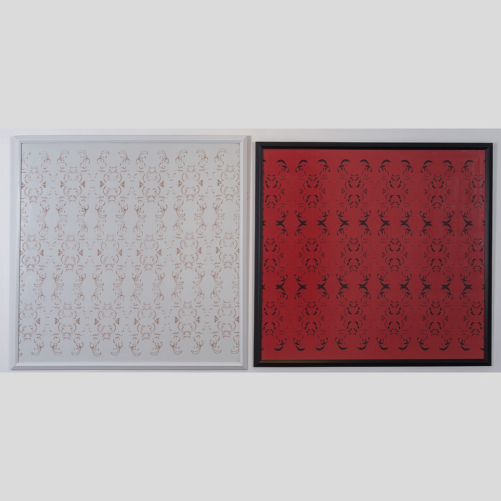 MÖ 3000 yıl öncesine uzanan bir tarihten ve Homeros’un İlyada’sında geçen mitolojik öykülerden ilham alarak ortaya çıkarılmış olan “Penthesilea & Achilles” adlı çalışma, Troya destanından iki önemli karakteri soyut birer motife dönüştürüyor. Görsel algının lekeler aracılığıyla analiz edilmesinde kullanılan psikolojik bir test yöntemi olan Rorschach testine benzer komposizyonuyla bu çalışma, Troyalılardan yana savaşan Amazonlar kraliçesi Penthesilea ve onu mızrağıyla öldürdükten sonra yüzünü görerek aşık olan Achilles’i yanyana temsil ediyor. Bu trajik aşk öyküsünden yüzeye çıkan ve ikonografik birer motif olarak izlenen “Penthesilea & Achilles” geometrik-estetik bir dengenin ötesinde sembolik olarak doku, desen, renk ve tekrar aracılığıyla “Troya”daki sayısız efsanenin sonsuzluğunu simgeliyor.