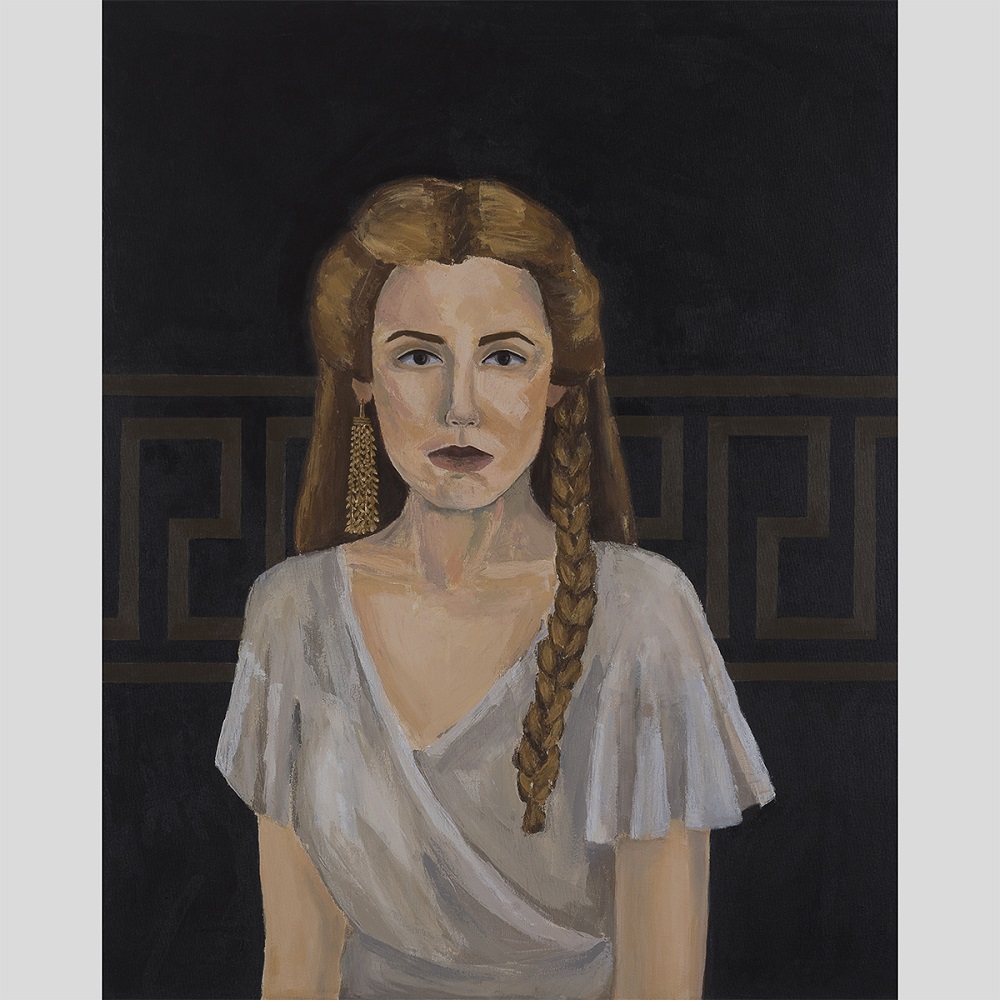 Üç bin yıldan daha fazla bir geçmişe sahip olduğu ileri sürülen Troya’nın hazineleri ilk kez 1873 yılında Alman arkeolog Heinrich Schliemann tarafından gün yüzüne çıkarılır. Uzun yıllar boyunca Troya’nın hazineleri tahrip edilerek dünyaya dağılır. Taçlar, yüzükler, küpeler, bileklikler, kolyeler, kemerler… her biri asırlar sonra bile formları ve tasarımlarıyla hala ilham veren birer sanat eseridir. Tıpkı, uğruna on yıl süren destansı savaşın merkezindeki kadın gibi her biri eşsiz bir hazinedir. Hazine adlı resim, bu antik kentin simgesi haline gelen paha biçilemez takıları ve bu hazinelerin süslediği güzellikleriyle destanın içinde gizlenen Troya kadınlarını betimler.