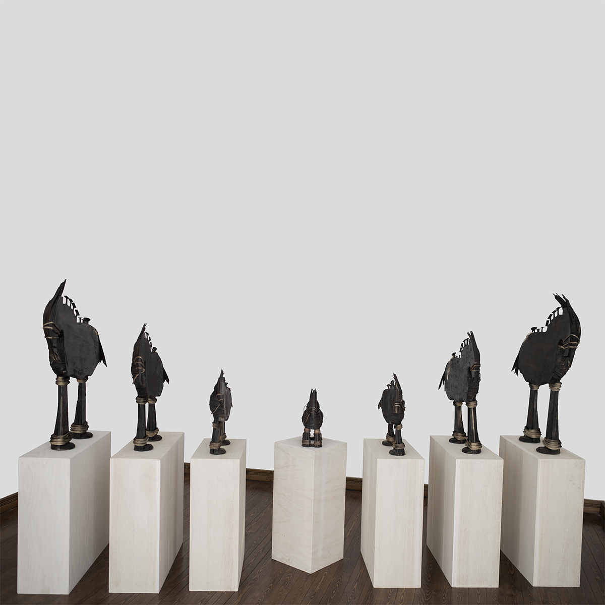 Paris ve Helen’in efsanesine konu olan Truva Atı, Troya kentinin ele geçirilmesi için tarihin en zeki savaş hilesi olarak kullanılır. Odysseus, Troyalıların sadece bir hileyle ve zekice bir planla yenileceklerini öngörür ve kentin surlarına bırakılan at, on yıl süren savaşın son hamlesi olur. Böylece Truva Atı yüzyıllardır dilden dile aktarılarak günümüze ulaşan bir efsane haline gelir. “Truva Atı” isimli çalışmada en küçük ve ortada yer alan at, efsanenin başlangıcını, yarım olan atlar ise bu hikayenin dilden dile, kulaktan kulağa aktarılarak günümüze kadar gelmesini temsil eder. Alman arkeolog Heinrich Schliemann’ın ortaya çıkardığı ve parça parça dağılan Troya hazinesine de işaret eden çalışma, efsane ve gerçekliğin içinde bir yolculuk önerir.