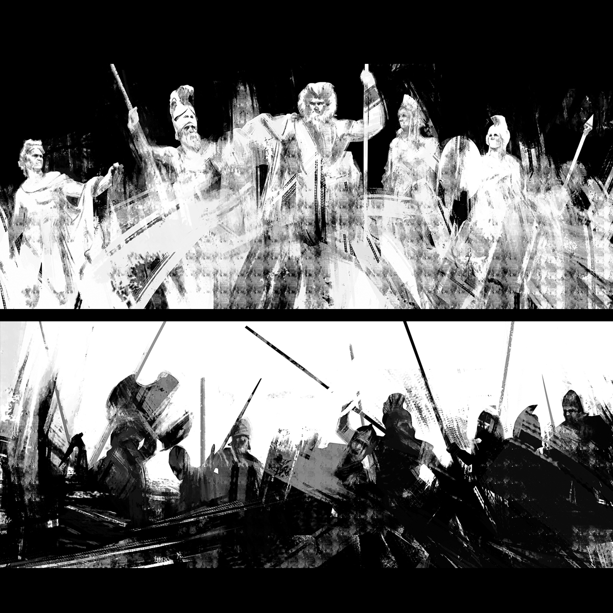 Truva’nın hem tanrıların hem kralların savaşı olduğu söylenir. Kimi zaman tanrıların kudreti ve adaleti, insanların zaferleri ya da trajedilerine sebep olur. “Kontrast” adlı dijital resim, İlyada destanına dair iki katlı bir sahne yaratır. Sahnenin altında Troya kenti, üstünde ise Tanrıların dünyası Olympos yer alır. Tıpkı Troya miti, efsanesi  ve anlatısın satır aralarında olduğu gibi bu sahneler de iki ayrı dünya gibi görünen bu dünyaları birbirine bağlar. İki karşıt kutup, bağdaşmaz iki dünya ya da karşıtlıkların mücadelesi bir bakıma birbirini tamamlayan, birinin varlığı bir diğerinin varlığını zorunlu kılan bir oluşun sahneleri olarak izlenebilir.