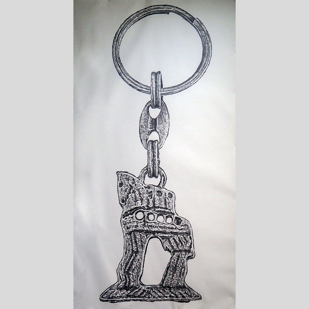 Turistik bir nesne olarak tasarlanan Truva atı anahtarlığın desen tekniği ile resimlendiği çalışmada “temsil” konusunun  güncel dönüşümünün izi sürülür. Turistik replikalar tarihsel belleğin ve o belleğe ait olan çok yönlü dinamiklerin pazarlanabilir ve herkes için satın alınabilir günlük kullanım ve “süs” eşyaları olarak satıldığı objelerdir. Bu uyarlamalar biçimsel ikonik fetişimzin bir uzantısı olarak günlük hayatımıza dahil olur. Turistik replikalar satın alınabilir ve taşınabilir ölçekte sınırsız sayıda çoğaltılabilir olup, popüler ikonalara dönüşür. Desen, tarihsel bir ikonun anıtsal ölçekte sunumuyla mit, efsane, gündelik yaşam olgularını birbiri içinde kesiştirir.
